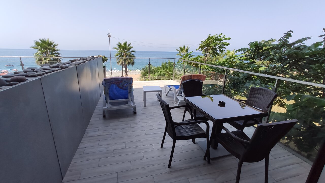 Гостиница “Le Figaro” находится на второй линии от городского пляжа. Дорога на пляж проходит через городской сквер.